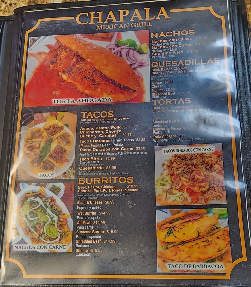 “ These are the places that should be praised more than the fancy places. Great food. I had the Tacos De Barbacoa. My colleague took me to this place. He goes here frequently with his family. I loved it. True, authentic Mexican food. This is a Dont Judge a Book by Its Cover restraunt. We all have them in our cities. Try Chapala out. ”